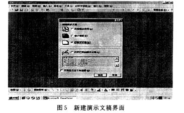 3.2 课件制作 (1)课件在中文Windows 98系统平台上制作,工具是多媒体软件PowerPoint。首先打开PowerPoint界面,屏幕上自动弹出“新建演示文稿”对话框,如图5所示。