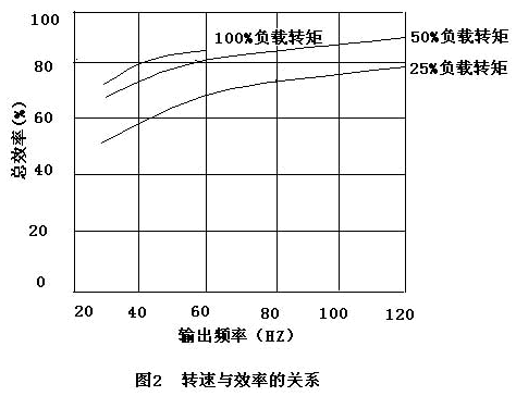 图1是变频器控制黄河啤酒厂1号制冷机的例子。在该例中,变频器选用艾默生型号为TD2000-4T2000G的00KW变频器,制冷机为大连冷冻机厂生产,电机功率为190KW。PID调节是由变频器自带的内置PID调节器完成的。在根据负载变化控制制冷机转速的方法中,我们的目的是想控制制冷机吸入口的温度,由于现场温度的采样比较困难,而吸入口的温度与压力又有着一定的对应关系,且在现场管道上安装压力变送器更容些,因而在本系统中,我们采用压力传感器检测压缩机的吸入压,只要变频器控制该压力维持恒定不变,则吸入口的温度也维持恒定不变。同时考虑到制冷机工作时的安全要求,我们将该制冷机原有的温度保护、油压保护等通过中继接入变频器,保证有温度保护或油压保护动作时,变频器能立即自动停机,防止机械设备的损坏。另外该制冷机原为两地控制,采用变频后我们仍保持原有的两地控制,这样,对操作人员来说,更易于操作。 三.运行模式 制冷机基本上是恒转矩特性,所以只要使变频器输出电压与频率成比例就行了。但是制冷机结合实际机的使用范围广,一般都与电机的设计条件不完全一致。在运行条件上电压也需要改变,最终仍需要实验确定最佳/F模式。另外,为了改善加速时的效率虽然可以改用变频器专用电机,但作为变频器故障时的备用,变频专用电机很难直接用工频电源进行运行。而且改用变频电机的费用会大幅增加,因此我们仍采用原有的电机及机械设备,只是将原有的自耦降压启动改为由变频器控制的压力闭环系统。 在闭环系统的构成中,艾默生变频器可定义两种典型的输入输出特性,即正作用和反作用,这两种特性可灵活应用在不同反馈特性的控制系统中。在本系统中,采用反作用特性,反馈增益极性为负极性。也即当吸入口压力增大时,变频器的输出频率也随之增大,当吸入口压力减小时,输出频率也随之减小。 为了防止变频器输出频率低时,制冷机散热差及总体效率的降低,在变频器上设定最低运行频率为30Hz。 四.节能效果 压缩机负载基本上是恒转矩负载,对恒转矩负载,电机的输出功率P的一般表达式为 P∝T*N 表达式中,T:负载转矩 N:电机转速 这就是说,即使是恒转矩负载,采用变频器等使电机速度下降,电机的输出功率将减小。变频器输入功率 PIN可用下式表示: PIN=P/(ηINV*η m) 表达式中,PIN:变频器输入功率 ηINV:变频器效率 η m :电机的效率 由上式,假设总效率(ηINV*η m)对于电机的转速为一定。则显然电机转速下降将引起电机输出功率P减小,与其成比例的变频器输入功率PIN也减小,即消耗电能降低。但是如图2所示,为使电机转速下降而使变频器输出频率降低,则总效率也降低。但因频率降低的幅度大于总效率降低的幅度,因此,与原先的控制方式相比,仍有显著的节能效果。另外,电磁调速电机、鼠笼电机的定子电压控制等从前的调速电机,转速下降时,总效率将大幅度降低,因而基本上得不到低速时的节能效果。因此采用变频器取代这些从前的调速方式,可以充分的节能。
