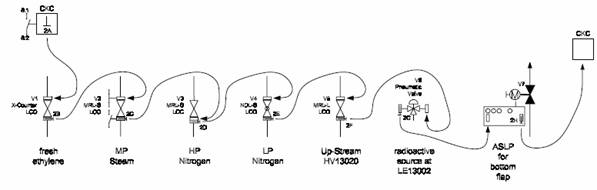 简谈机械联锁安全系统的设计与应用 作者: 佟锡江 于秀英 徐向明 (大庆石化工程有限公司 163714) 摘要:我国目前尚无机械联锁系统的设计标准及规范,本文根据我公司实际承担的几套聚乙烯装置的实际设计经验,结合外商设计原则,针对机械联锁的应用以及设计等的特殊要求进行了简要介绍。 关键词:机械联锁;设计;应用 Brief introduction for designing and application of mechanical interlock-system Tong xijiang Yu xiuying (Daqing Petrochemical Engineering Co., Ltd.163714) Abstract: There is not applicable code and standard for mechanical interlock-system in China now, combining with design principle of foreign company, brief introduction for its special requiements of designing and application is given here according to our experience during several PE plants design. Key words:Mechanical interlock-system; Design; Application l 引言 “安全是设计和规划出来的,而不是检查出来的,设计是保障,检查是辅助”,机械联锁就是化工装置中的重要安全保障措施。从2002初年至2006年底,大庆石化工程有限公司先后承担了中国石油大庆石化公司20万吨/年高压聚乙烯装置、大庆石化公司25万吨/年全密度聚乙烯装置、兰州石化公司20万吨/年高压聚乙烯装置等多项工程项目的设计任务,这些项目大量地应用了机械联锁系统,以确保装置安全可靠运行。本文根据这几套装置的应用实例,简要地介绍了机械联锁系统在石油化工领域的设计与应用。 2 机械联锁简介 机械联锁系统是为防止人为操作失误而人为设置的必须按照指定顺序操作,否则无法进行后续操作的机械的安全操作系统。 机械联锁系统采用钥匙编码系统的机械联锁设施来确保操作人员按照预定的程序对相应的安全设施进行开启、关闭或隔离操作。 按照一定次序来传递钥匙,即所谓的“联锁”,在国外广泛地被安全部门、保险机构、标准机构认为是用来防止操作错误的最可靠、最经济的方法。 每把钥匙都带有唯一的编码,该编码与钥匙柜中的编码及用该钥匙进行锁定的设施的编码相对应。该编码机构可有效防止当一个系统正在运行时对另一个系统进行的误操作。 2.1 机械联锁的起源与发展 机械联锁最早应用于电力开关控制上,是人们根据电力操作的特定顺序和长期的安全生产经验设计出的一套避免人为操作失误的安全设施。 后来,由于其操作的可靠性、安全性,逐步将其应用到了石油、化工 、核电等领域。 ![]() 机械联锁安全系统在石油化工领域的应用最早开始于上世纪90年代初,主要应用于欧美一些发达国家的生产装置上,本世纪初由于我国大量引进了一些石油化工工艺技术以及一些大型合资化工企业在中国的落户(如赛科等),随之,也将机械联锁安全系统带进了我国。 2.2 机械联锁安全系统组成 机械联锁安全系统一般由阀门、阀锁、钥匙、钥匙柜、控制开关等组成。可由一个阀门或由多个阀门串联组成。 ![]() 2.3阀锁型式 阀锁的型式主要分为: (1) MRL(Multi Rotate Lock)多回转锁,主要应用于闸阀、截止阀、齿轮传动等阀门上; (2) NDL(Ninety Degree lock)90度回转锁,主要应用于球阀、旋筛阀、蝶阀等90度旋转的阀门上; (3) HL(Hybrid Lock)(可根据需要进行设计的其它种类的阀锁)。 ![]() 2.4阀锁的特点 (1) 所有联锁机构均采用符合国际标准的不锈钢材料 (2) 设计的可靠性和完整性,无须维修,但应定期保养 (3) 设计与制造的紧凑性和易于操作的特点 (4) 防火设计 (5) 易于与阀门连接 3 机械联锁安全系统的设计与应用 3.1标准 机械联锁安全系统的设计和制造目前尚无统一的标准,一般都采用制造商标准。例如:德国的GST、英国SFC、荷兰的Netherlocks等标准,我国同样没有这方面的标准规范,仅扬州罗克阀锁科技有限公司开始研发并制造了机械联锁产品。 3.2 设计与应用 目前,机械联锁安全系统在我国的应用还仅局限于引进工艺技术的装置上,被动于专利商的要求。近年来,我国也越来越重视生产装置的安全性,机械联锁在中石油、中石化等重要装置中开始应用。例如,LDPE装置的火炬排放系统、反应器排放系统;FDPE装置的压缩机透平安全操作系统;各类装置的安全阀排放系统等都应用了机械联锁设施。这样,大大地提高了装置的安全性,完全能够避免人为操作失误而造成事故发生。 3.2.1安全阀运行与维修状态的应用 目前应用最广泛的就是安全阀排放系统,如图,其主要目的就是防止安全阀前后切断阀由于操作失误处于不正确的位置而引起事故的发生。例如:如果安全阀在检验后恢复安装,其切断阀忘记打开,生产运行时设备超压,此时,不可想象将会发生什么?但如果我们采用了机械联锁,什么都不用担心了,当维修安全阀时,其操作是这样的: ![]() (1) 将位于控制中心钥匙柜中“PSV-XX联锁”位置上的钥匙PSV-XXA取出。 (2) 用钥匙PSV-XXA将位于安全阀PSV-XX入口切断阀解锁,关闭,然后锁定。该操作将PSV-XX入口切断阀上的钥匙PSV-XXB释放。 (3) 用钥匙PSV-XXB将位于安全阀PSV-XX出口切断阀解锁,关闭,然后锁定。该操作将PSV-XX出口切断阀上的钥匙PSV-XXC释放。 (4) 将钥匙PSV-XXC放入控制中心钥匙柜中 完成以上步骤,切换至维修状态即告完成。 切换至正常操作状态的步骤与以上步骤正好相反。 同样,爆破片的应用也是这样。 3.2.2火炬气排放运行与维修状态的应用 ![]() (1) 将位于控制中心钥匙柜中“联锁”位置上的钥匙1P取出。用钥匙1P将位于火炬收集器上对应的火炬放