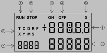 ⑧ 数值显示, 当显示模式为16 位时, 上面5 个位数为数值的显示。