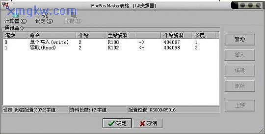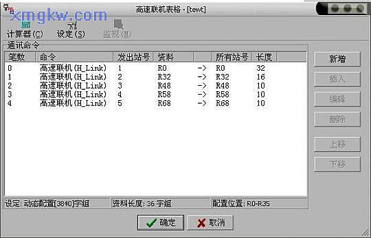 高速联机的数据传输理念是以COMMON DATA MEMORY 观念来设计,每站最多支配32word长度的资料区域。例如主站将R0~R31 的内容送出,则所有从站PLC 的R0~R31 的内容都会与主站相同;2 号从PLC 将R32~R47 中内容送出,则主站及其它从PLC 的R32~R47 的内容都会与2 号站相同,依次类推。