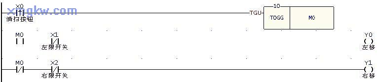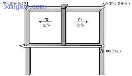 【控制要求】黑板清扫臂有左移和右移两种动作,按一下清扫按钮,可在左移和右移两种动作之间切换。清扫臂移至黑板左极限或右极限时,清扫臂将停止动作,直至再次按下清扫按钮才会向上次移动方向的反方向移动。