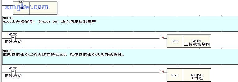 在自动仓储系统或者高楼电梯控制的应用中,常有伺服寸动的动作要求。我们将伺服寸动写成子程序,方便调用。例如正转的副程式为 STEP+,反转为 STEP-。