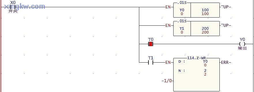 开关 X0接通时,可以通过改变定时器的预定时间,达到改变脉冲波宽调变功能,产生震荡波形。【元件说明】