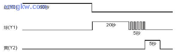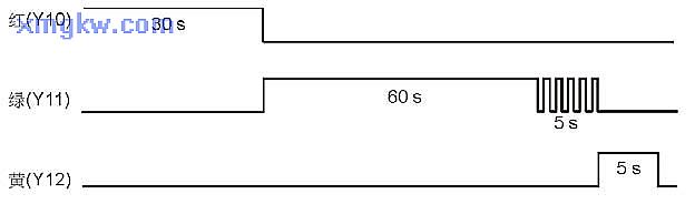 东西方向流程处于红灯状态时,南北方向流程应相应的处在绿灯,绿灯闪烁,黄灯流程。